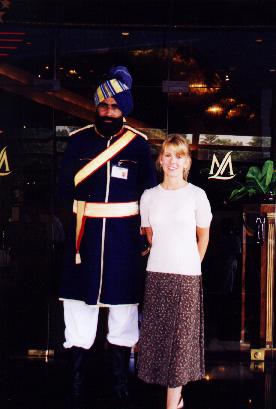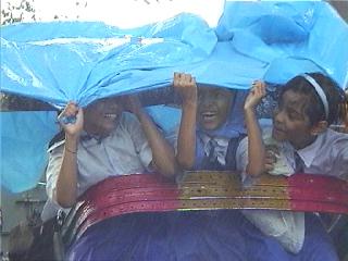 | There so much water outside that you have to do the "Embassador Tour". That when you see the sites from looking out the window of an old London cabby style "Embassador" sedan. The red Mogul palace in Delhi swims through the rain waterfall window. "Don't worry, there is a better red Mogul palace in Agra, just like this one later on your tour, the tour guide said." We'd get lots of the Hindu basic philosophy of "don't worry, be happy" - there's nothing you can do about it anyway.... | ![]() |