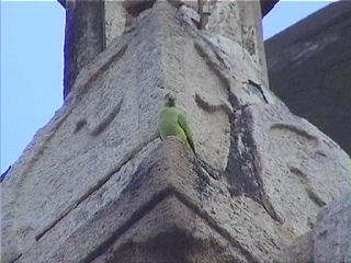 Paraquetes fly wild all over India. They are as green as the rain drenched lawn. You can't miss them because they are quite noisy. |