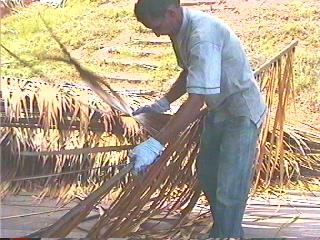 This man was able to work 3 times faster than any of the other younger men when making the leaf thatch that was used to build the hut roofs. Apparently the roofs willlast only 3-5 years before it must be replaced. Stuff has a hard a time in jungle conditions. |