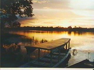 The ride over to the Rain Forest Lodge took about 4 hours from Manaus. When we arrived, we were the only people staying there for the first two days. The lodge is on a lake off of the main rivers. The water level was not as low as is usual in the dry season. At the lodge there were 15 huts, a beautiful pool, a small scoccer field, a grill pit and a main dining hut. All around us was river side jungle. |
