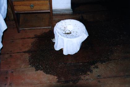 Next morning we figured out why we had a hole in our thatched roof - it was from TERMITES. We woke up with thousands of the nasty critters all over our bed and floor. Yuck ---- actually - double YUCK. This is the type of thing nightmares are made of. At least for Tif. Not for Hans though, he woke up and said, "cool look at that." |
