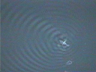 | This is the movement that attracts all kinds of fish. It is a bug struggling for his life, trying to fly out of the water. The patterns created are beautiful to watch, as they are spread all over the river. Or perhaps it is practicing its back stroke. | ![]() |