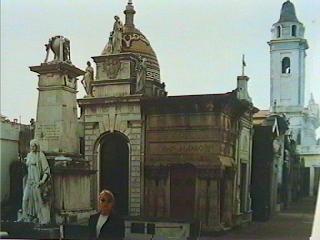 This is the cemetary where Evita is buried. It is like a little stony city, except it is a little dead .... ha ha :) Everyone buried here has a Spanish name (or I guess Argentinian name). Many of the tombs are carved from marble and are beautiful works of art. We would imagine that in today's prices, you might pay $100,000 for a tomb like these. |
