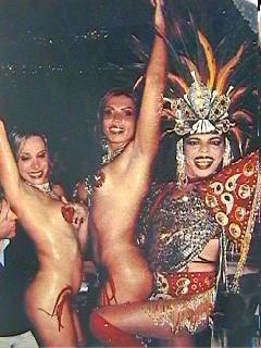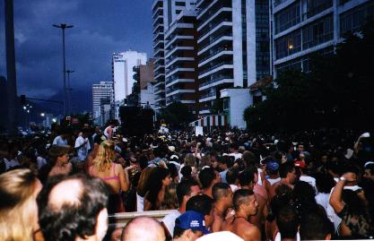 Another typical thing to do is go to massive evening Parties - held at large social clubs. We went to the famously decadent Red-n-Black Ball. Red and Black are the colors of Rio's largest soccer team, Flamengo. Talk about a Bash-o-Rama.... "ohh,...... so that's where he get's those great party ideas!" |