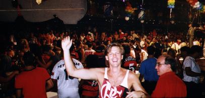 A big band played samba on stage to all the red-n-black revelers. Hans happened, before the night was over, to find himself on stage trying to avoid security guards - but, hey that's another story. It was a lot of fun dancing all night long with so many enthusiastic sambistas. | ![]() |