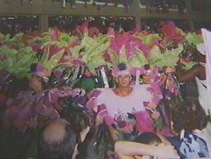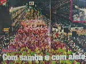 Note: Lot's of even better "in-the-action" pictures are still to come once we capture shots from the video that's in SF. However, it falls far short of the live event. Nothing could replicate the deafing drumming sounds and the energy that emminated from 75,000 samba dancers and a crowd of 100,000 people singing along the words to each of the Samba School songs. |