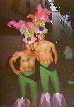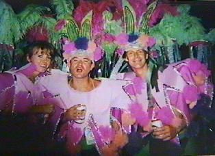 Sergio with buddy Hans singing "Oh ya ya, Vem pra'avenida ver meu Guri desfilar, oh ya ya". It was just one of many song lines we had to crash learn to really participate in the parade. Tiff never quite could pronounce the words since they are so tricky and sung very fast. But she did a good job lip synching in the parade. |