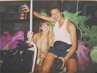 But first, we had to get there with those big costumes. So we HIJACKED a public bus. Well, almost. The group was desperate. We saw a public transportation bus standing there so we asked, "hey, buddy...ah ah, your off duty, what about a ride in your bus to the Sambadrome... we'll make it worth your while". He said - how much?.... Needless to say - we got there. Tiff has some great video of Hans swinging on the bars in the bus. How often do you get to do that? | ![]() |