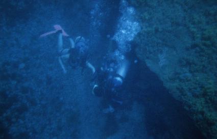 That's Tiffany holding hands with an instructor while scuba diving for the first time. She was too afraid of all the sea creatures to let go of his hand. She was under for almost a half hour and got as far down as 50 feet. Yeah Tiff! |