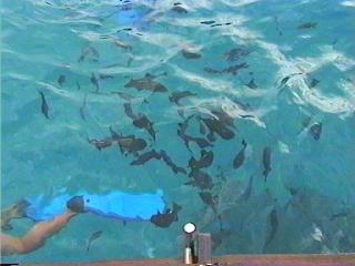 Beautiful tropical fish everywhere. They swim all around your arms and legs looking for food. The visabilty in the water was great. I've never seen better snorkeling conditions. |
