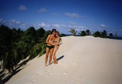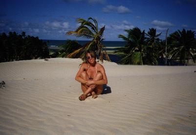We took a dune buggy trip that lasted 13 hours and covered well over a hundred kilometers of large sand dunes and beaches. We hired a "burgero", who is a local dune buggy guide. Often we had to cross streams on flat canoe barges. The thrill part of the trip was gowing full speed up and down the sides of huge dunes. It was like skiing on sand. Some advice, "sometimes we flip and it's best not to have your safety belt fastened." Tiff was scared to death. | ![]() |