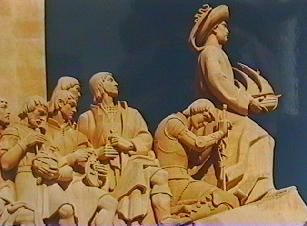 Portugal is famous for its navigators who sailed around the world. Their greatest sailor was Vasco de Gama who is credited with finding the greatly sought after trading routes to India and the Far East. The monument caputers him (2nd) and many other famous discoveres who were sponsored on their great journeys by their enlightened King, Don Pedro - at the front. It's a large and beautiful monument at the water's edge where many of the sailors began their great adventures. | ![]() |