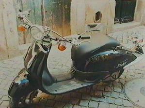 There are many elegant things to be found - like this classy looking black and chrome Vespa scooter sitting here in the old narrow cobble stone streets of Alfama. | ![]() |