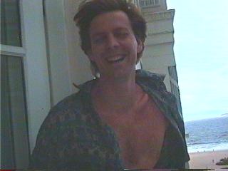 Hans back on the balcony fantasizing about supermodels. Can you see the little devil sitting on his shoulder? |
