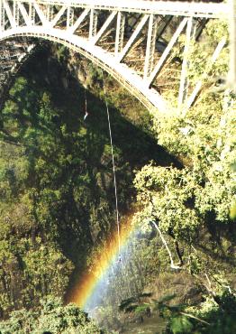 Zambezi Bridge with some rubber bands attached to his ankles. He pays US