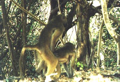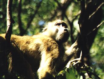 Up in the trees the stealthy animals were always watching. This baboon keeps and eye on us and all the others. It must be his job in the group - to alert the rest of monkeys of danger. | ![]() |