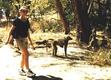 As we walked around the Falls there were many baboons strolling around. We had worked so hard in Brazil to see monkeys and here they were in crowds right next to us. | ![]() |