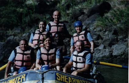 One of the coolest and craziest things to do in Victoria Falls is whitewater rafting. The water flow during high water can be 4-5 times the colorado river, especially during this "El Nino" year. It is definitely graded level 5 - maybe 6 if there is one. All this water - believe it or not - makes the river "less" exciting because there are fewer bumps. Since the water hits the rocks well below the surface. It's much more intense in October. But still, 2 people drowned on the river the week we were there. Too much water is still v-e-r-y dangerous. |