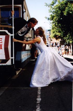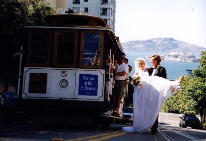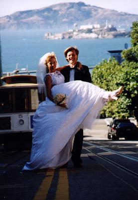 "What a steeeep hill to climb ...... who's idea was this anyway. Guess I had better carry my new bride over the San Francisco threshhold." |